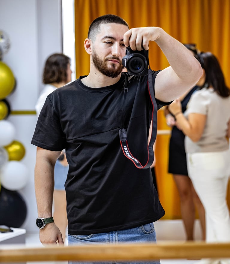 Oferim pachete foto sau foto-video, adaptate fiecărui eveniment și fiecărei povești. Lucrăm atât în locație, cât și cu studio foto portabil, ideal pentru evenimente care merită un plus de eleganță și lumină controlată.